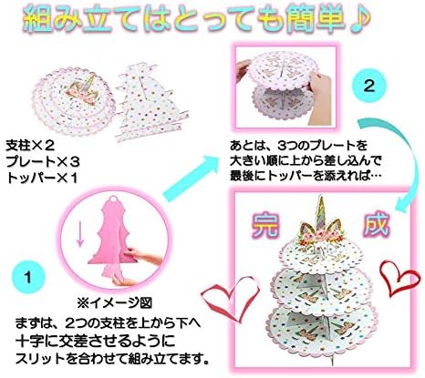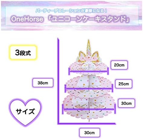 OneHorse 3段 ユニコーン ケーキスタンド テーブル デコレーション ゆめかわいい パーティー 装飾 飾り付け 紙製
