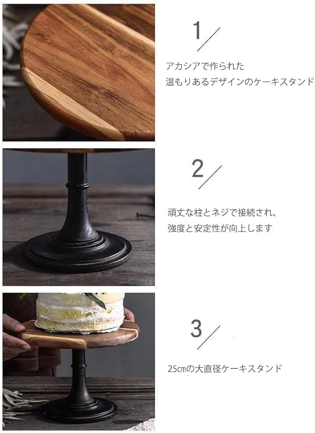ケーキスタンド 直径25㎝ アフタヌーンティースタンド ケーキ展示用 アカシア お菓子皿 コンポート 結婚式 誕生日 パーティー