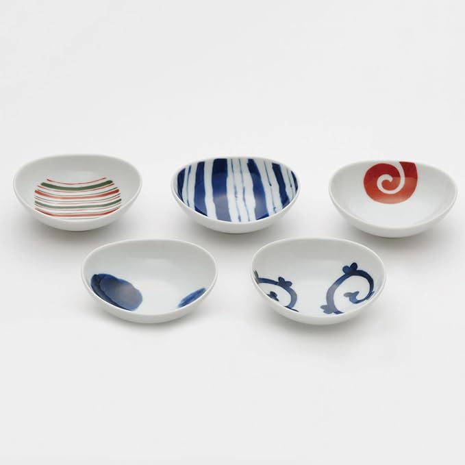 西海陶器(Saikaitoki) 小鉢 セット 迎春 お正月 姫小付 器 小皿 食器 和食器 セット 5個 波佐見焼 染錦末広珍味鉢(5柄組)
