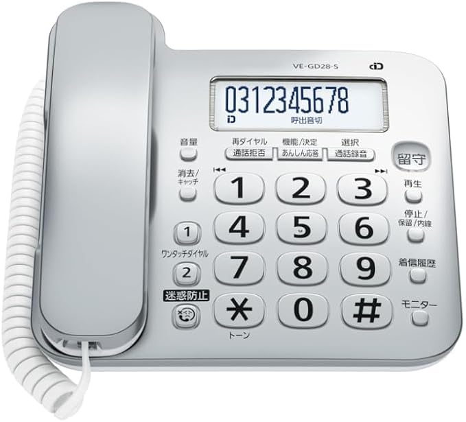 コード付き デジタル電話機 VE-GD28DL-S (親機のみ・子機無し) 迷惑防止機能付き シルバー & NEXURISE オリジナル 振り込め詐欺撃退シール