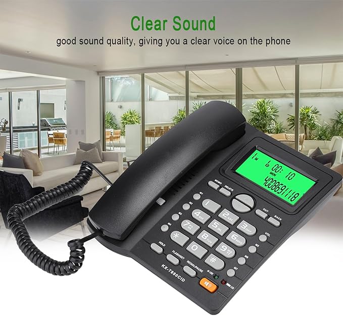 自宅の電話機、電話機 シンプル 発信者番号表示付きノイズキャンセリング機能付き固定電話機、ホームオフィスの固定電話機 (黒)
