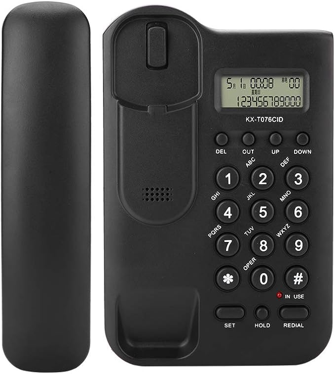Vbestlife 固定電話 KX-T076 FSK/DTMFデュアルシステム有線大型ボタンデスクトップ壁電話固定電話 ホームホテルオフィス用(黒)
