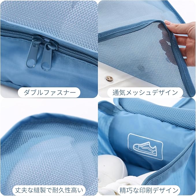 TIANZONG トラベルポーチ パッキングポーチ アレンジケース 6点セット 大容量 超軽量 出張 旅行 便利グッズ 下着収納キューブ 衣類収納 鞋袋 (ブルー)