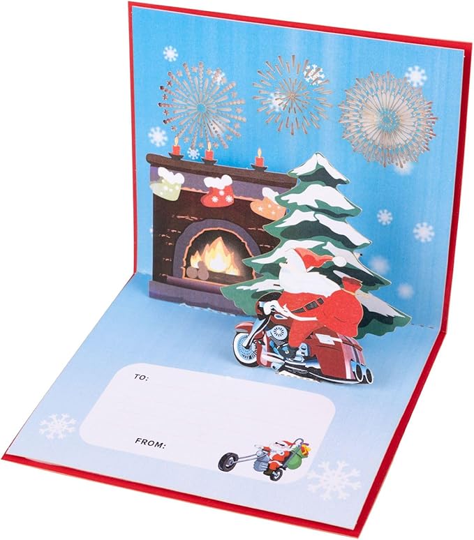 CAWKAY 3Dクリスマスカード ライト付き 花火音付き 立体ポップアップカード 折りたたみ 記念日カード サンタ お祝い ギフト プレゼント (サンタ(バイク))