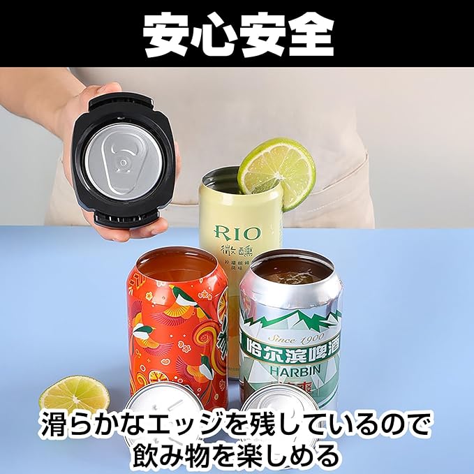 スチール缶やアルミ缶のトップ部分を綺麗にカットできるので、缶をコップ代わりにしたいときや、中身をスムーズに注ぎたい場面に最適。