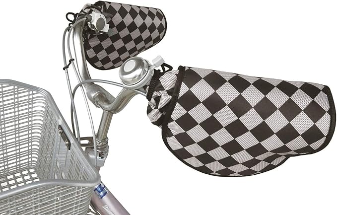 防寒 自転車用ハンドルカバー 黒・グレーチェック柄