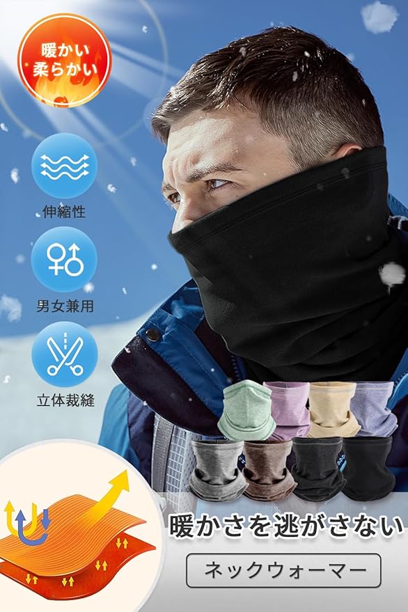 【多様なシーン活躍】日常の使いはもちろん、バイク・スキーなどのシーンにより効果的なネックウォーマーやフェイスカバーの防寒対策に大活躍。自転車、サイクリング、バイク、釣り、スキー、登山、ツーリング、トレッキング、ランニング、ジョギングなどの冬アウトドアスポーツに大活躍です。フリーサイズで男女問わずに装着できます。