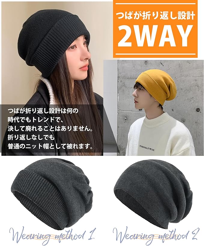 【細かい縫製方法・つばが折り返し設計】ニット帽は丈夫な素材を使用しており細かい縫製方法で織られた、簡単に壊れたやすくなりませんし、高品質な厚手のニット帽を生産できました。さらに、つばが折り返し設計は何の時代でもトレンドで、決して廃れることはありません。また、帽子の後ろが下りてきれいなシルエットで被ることができる帽子です。