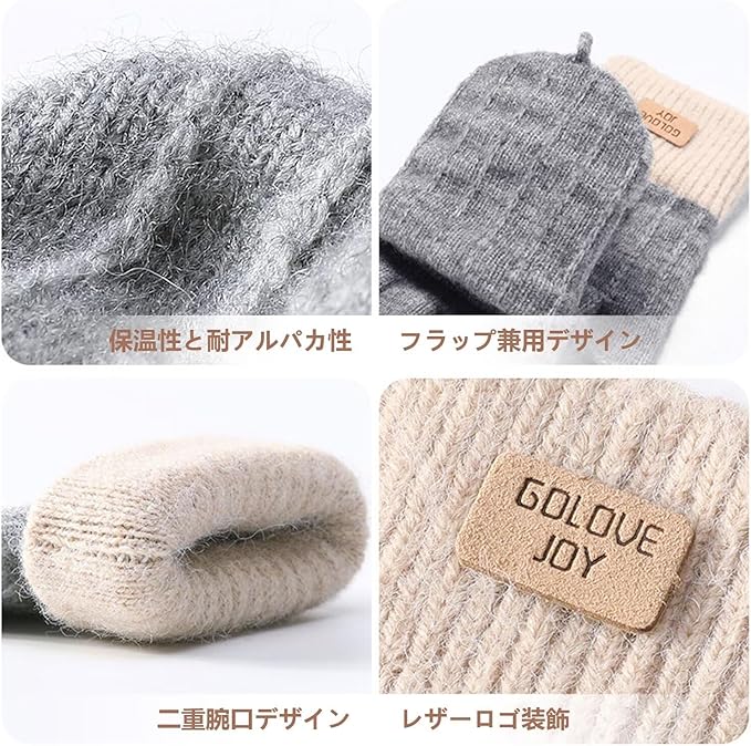【優れた防寒保温性】柔らかいニット素材は手に心地よい触感を提供し、手首までしっかりと覆って保温します。見た目も温かみがあります。手首部分はリブ編みで、伸縮性が優れているため、冷たい風を防ぎます。