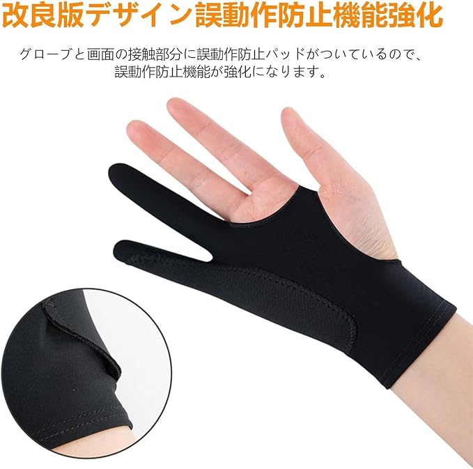 【誤操作防止】グローブの画面接触部分には非通電パッドが付いているため、絵を描く際に画面に触れても誤った操作を防止します。これは二本指グローブで、画面に手を置いても誤ったタッチを心配することなく、ストレスを解消できます。