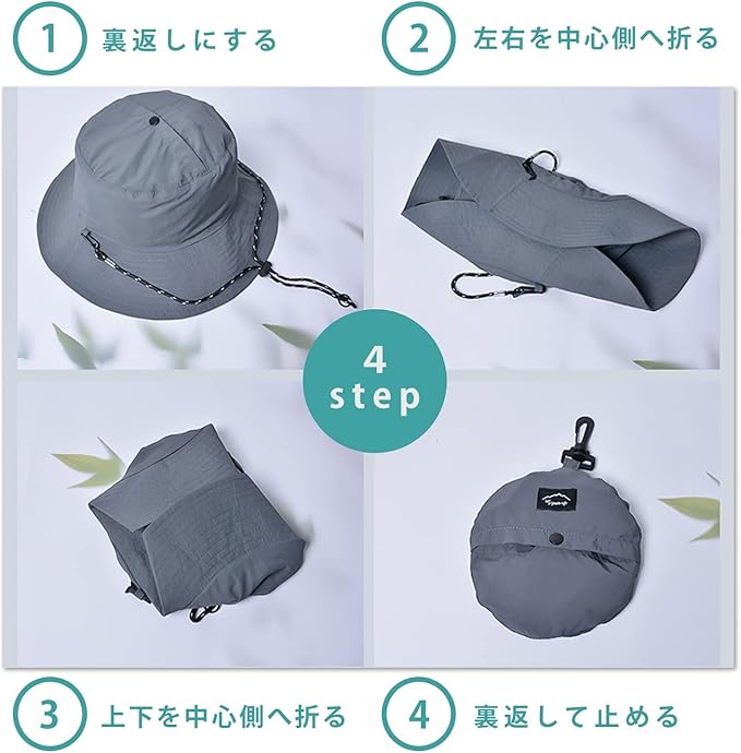 【軽量&コンパクト収納】コンパクトに折りたたむことができるのでバッグに入れて持ち運びやすく、場所をとらず収納できます。カバンなどにつけて携帯しやすいフック付き。軽量なので、長時間かぶっていても疲れにくい点もポイントです。