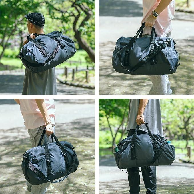 【軽量&丈夫で抜群の機能性!】軽量で丈夫なナイロン素材を採用。軽量&コンパクトに折りたたんで収納でき、荷物の量に応じて調整できるコンプレッション機能が付いているのは前述した通り。さらに、大きめのサイドポケットやシッパー付きの小物ポケット、取り外し可能で長さも調整可能なショルダーストラップなども装備され、機能性は抜群です!