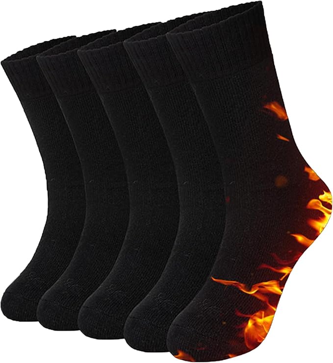 【厚くて暖かいウール靴下】MOSOTECH 5ペアの レディース サーマル靴下は、厚く、柔らかく、快適で、通気性、耐摩耗性、吸汗性に優れた高品質のウールとポリエステルの混紡で作られています。 レディースの厚手の靴下は各ペアが厚く、寒い冬に十分暖かいです。 フリーサイズでほとんどの レディースにフィットします: サイズ: 22-25cm。