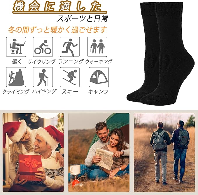 【多機能】ブーツ、スニーカー、革靴など、どんなタイプの靴にも合わせられるさまざまな色の組み合わせをご用意しています。冬用ソックス、ハイキングソックス、オフィスソックス、スクールソックス、厚手ソックス、アウトドアソックス、スポーツソックス、室内用ソックス、家庭用ソックス、ワークソックス、クルーソックス、ブーツソックス、クリスマスストッキング用ソックスとして、春、秋、冬、または寒い天候や雪の多い地域で着用できます。