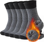 【厚くて暖かいウール靴下】MOSOTECH 5ペアの メンズサーマル靴下は、厚く、柔らかく、快適で、通気性、耐摩耗性、吸汗性に優れた高品質のウールとポリエステルの混紡で作られています。 メンズの厚手の靴下は各ペアが厚く、寒い冬に十分暖かいです。 フリーサイズでほとんどの メンズにフィットします: サイズ: 24-28cm。