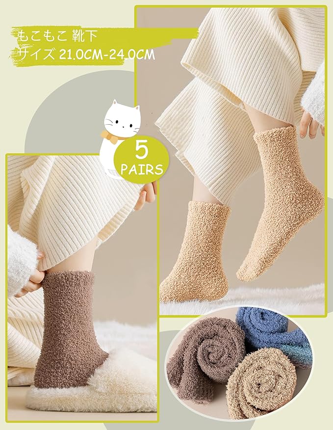 柔らかくて暖かい:高品質のマイクロファイバーで作られたこの豪華な靴下を履くと、柔らかい雲の上にいるような気分になります。最も寒い冬でも、靴下 レディース 暖かい ソックスは体を暖かく保ち、安らかな眠りを保証します。