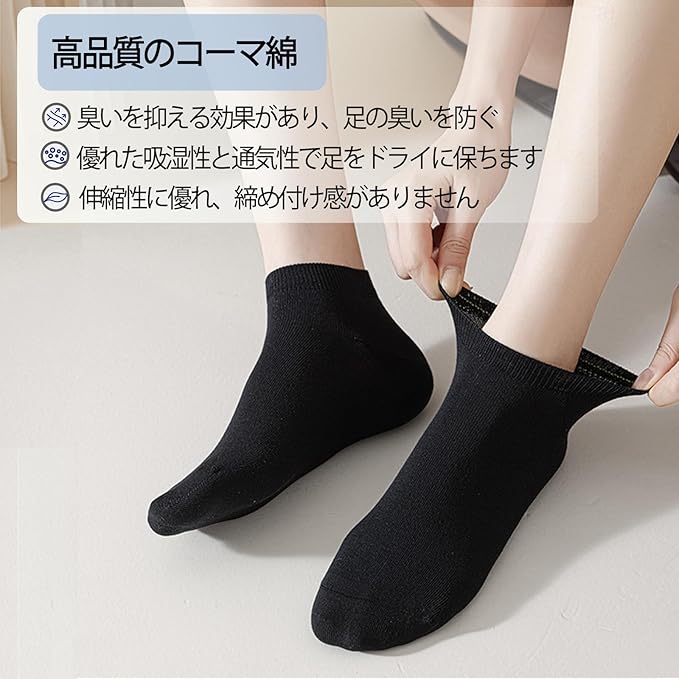 【軽量で通気性のあるアンクルソックス】この靴下レディースには、靴下黒が5足入っています。靴下 レディース 黒はコーム綿86%の生地で作られており、軽くて柔らかく、通気性に優れる。夏でも足を涼しく乾燥させることができ、臭いの発生を効果的に减少し、春夏に最適です。