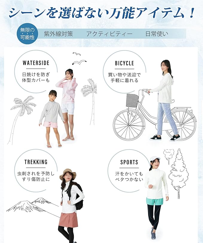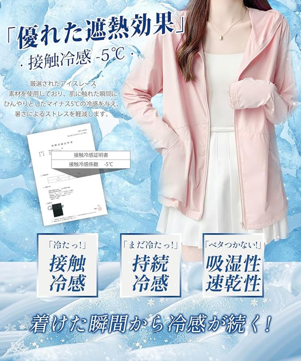 [GAOTEK] ラッシュガード レディース パーカー UVカット 【皮膚科医監修・UPF50+測定済み・接触冷感】 冷感パーカー 抗菌防臭 大きいサイズ 日焼け対策 吸汗速乾 通気性 指穴あり 夏 水着 軽量 薄手 体型カバー 可愛い