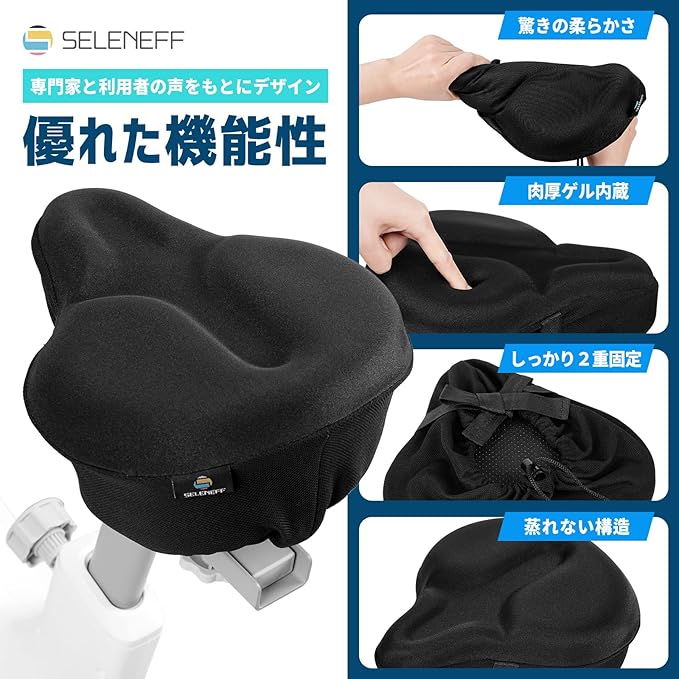 SELENEFF 自転車 サドルカバー 防水 ジェルクッション 極厚サドルカバー 痛くない フィットネスバイク エアロバイク ママチャリ シティサイクル 大きめ 肉厚ゲルクッション 超肉厚 衝撃吸収 低反発