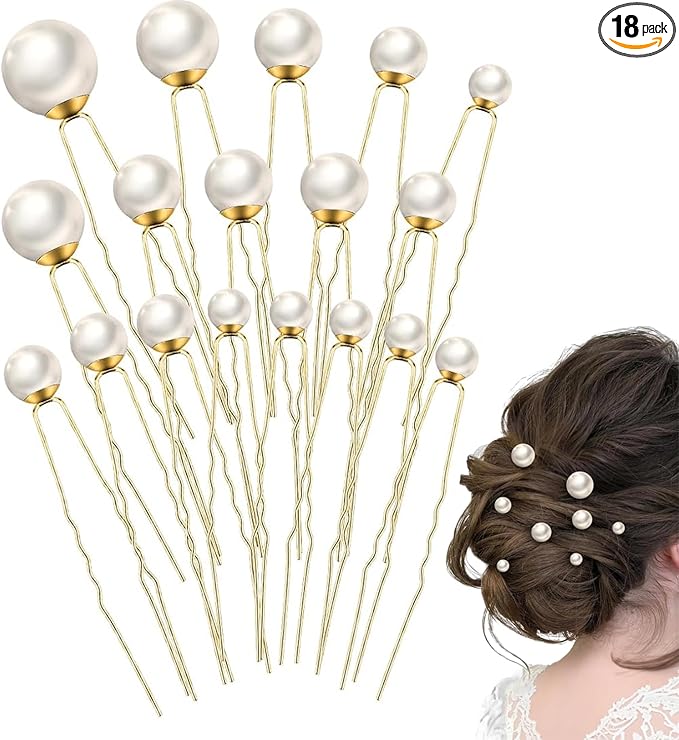 YACHUN パール 髪飾り パールピン Uピン ヘアピン セット 前髪 ヘアクリップ 結婚式 花嫁 和装 パーティー 卒業式 入学式 成人式 発表会 撮影用 髪ピン 普段使い おしゃれ ヘアアクセサリー ゴールド(4サイズ、18個セット)