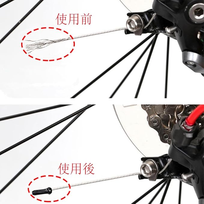 【インストールが簡単】:このエンドキャップはOリング設計なので、エンドキャップをブレーキのブレーキワイヤコア端または変速ワイヤコア端にスライドさせるだけで簡単な取り付けが完了します。