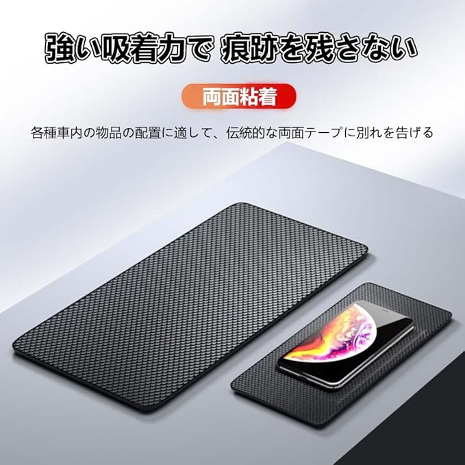 【滑り止め効果が強い】このカーダッシュボードマットは優れた滑り止め効果があり、アイテムをしっかりと保持することができます。携帯電話、香水、タバコ、ペン、コイン、メガネなどを置くことができ、でこぼこ道を運転したり、急ブレーキをかけたりしても、これらの小物が落ちる心配がありません。