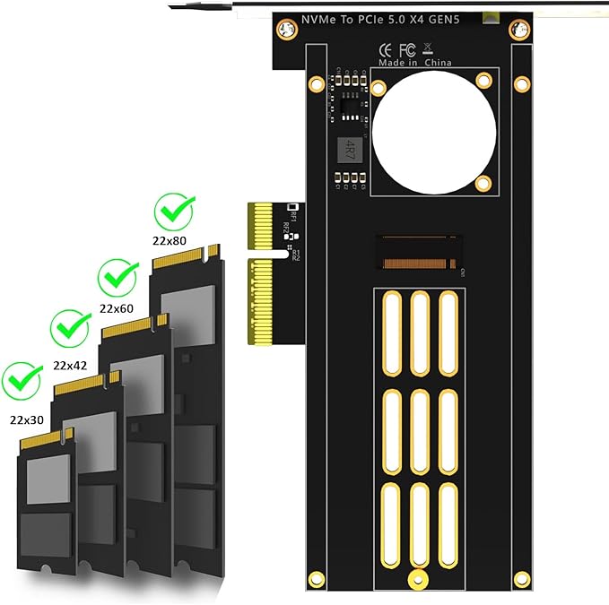 M.2 NVMe - PCIe 5.0 X4アダプタ: マザーボードのPCIe X4/X8/X16スロットを使用して、PCIE 5.0 M.2 NVMe SSDをPC/サーバーに取り付ける。
