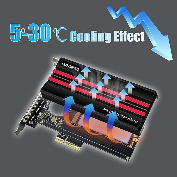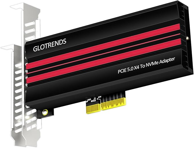 GLOTRENDS PA19 M.2 NVMe - PCIe 5.0 X4アダプタ、M.2 NVMe SSD用、大型アルミヒートシンクカバー、レギュラー/ロープロファイルブラケット