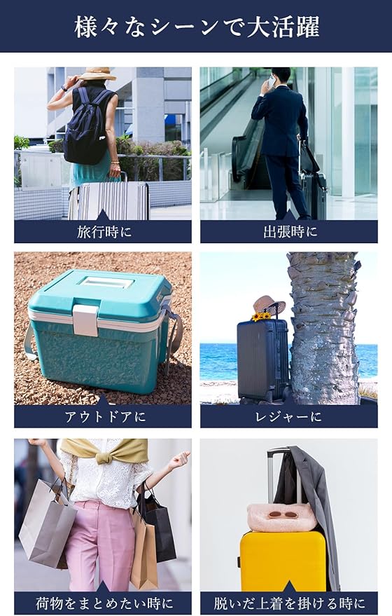 ✅【利用シーン】トラベルバッグ・キャリーバックに荷物をとても簡単に固定することができます。 ほとんどのスライドハンドル付旅行用キャリーに使用可能な優れもの。出張 国内・海外旅行 電車 飛行機 移動時に キャスターバッグを持っていくときに役に立ちます。また、アウトドアの際にクーラーBOX上に荷物を載せた移動などでも活躍します!