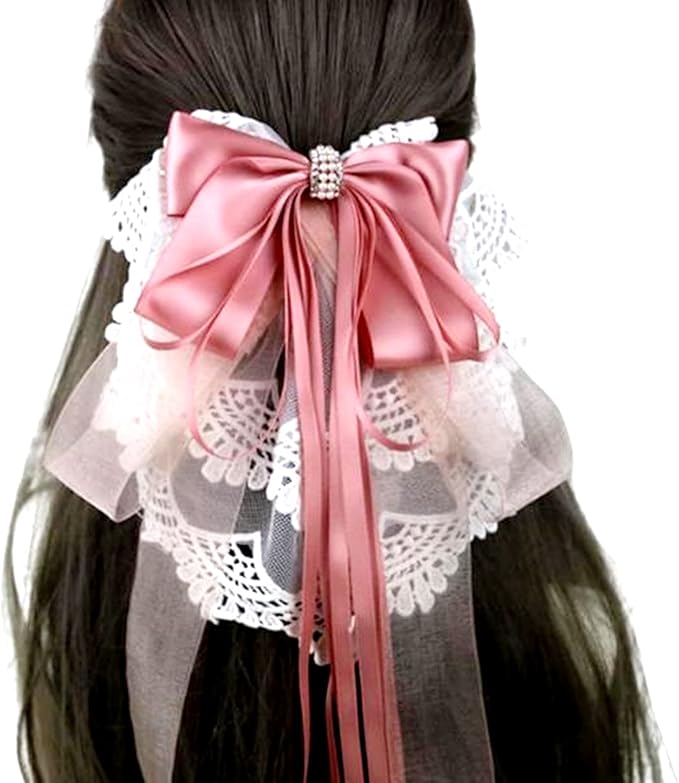 [SCGEHA] バレッタ 髪飾り レース リボンヘアアクセサリー ヘッドドレス ゴスロリ ロリータ お姫様 森ガール(スモークピンク)