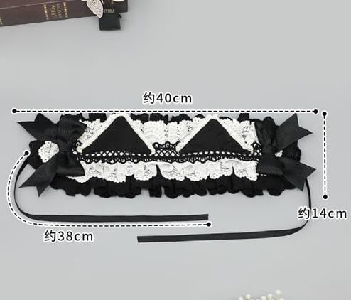 メイド風 ヘッドドレス ボンネット風 レース付き リボンカチューシャ 髪飾り レース リボン フリル クラシカル ロリータ ゴシック 黒白 ブラックホワイト 文化祭 学園祭 ハロウィン用 コスプレ用