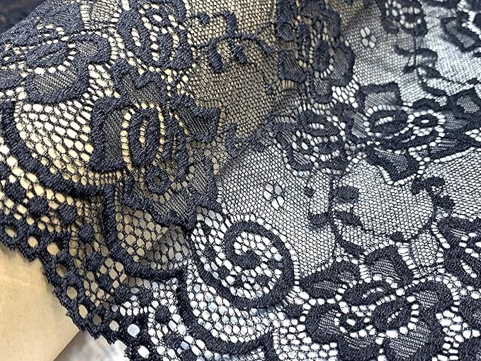 and.A レース ラッセルレース 33cm幅 ストレッチ 3m 白 黒 リボン ハンドメイド リメイク 布 生地 ハギレ DIY 花 ホワイト ブラック(ブラック)