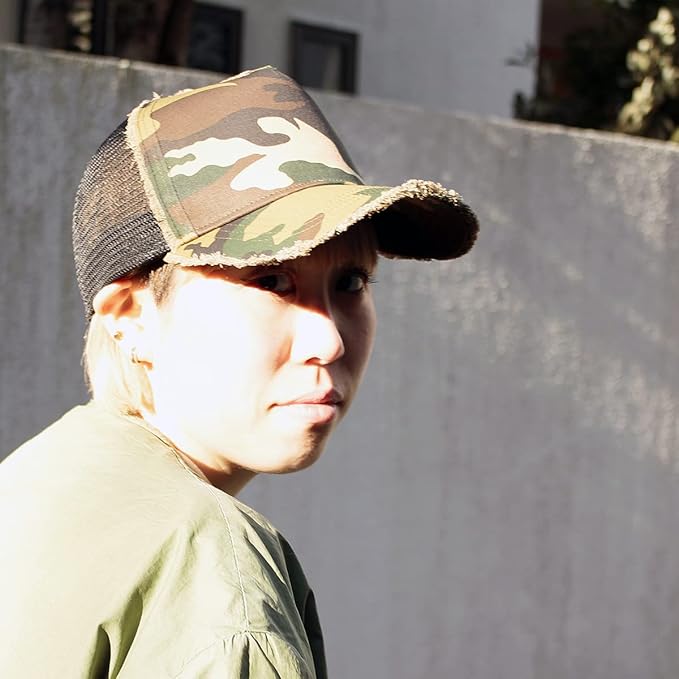 永遠の定番メッシュキャップ。切りっぱなしのダメージ加工でボディとツバの縁を仕上げ。迷彩に加えノンウォッシュのインディゴとブラックデニムの3色展開。柄生地勝負のシンプルメッシュキャップです。近所のコンビニから普通に外出まで、服装を選ばずにサッとかぶれます。サイズ:フリーサイズ(約57-59cm)※アジャスター調整可能、素材:コットン・ポリエステル