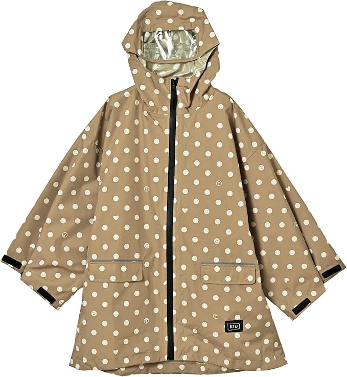 [キウ] 大雨対応 キッズ 袖付き 台風 ポンチョ はっ水 防水 レインポンチョ ピーズドットベージュ K71M-298