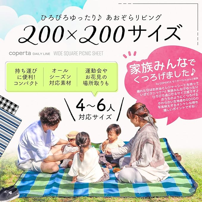 【キャンプクリエイター推薦】 レジャーシート 厚手 ピクニック 【コンパクト収納 大判200 200cm 防水断熱素材】コペルタ (ラインブルー)