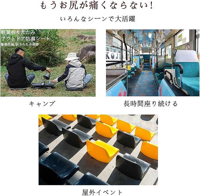 折りたたみ座布団 厚手 2.0cm 軽量 低反発 キャンプクッション スポーツ観戦 釣りをする 公園 運動会 夏は断熱、冬は防湿 大人/子供用 (ブラック)