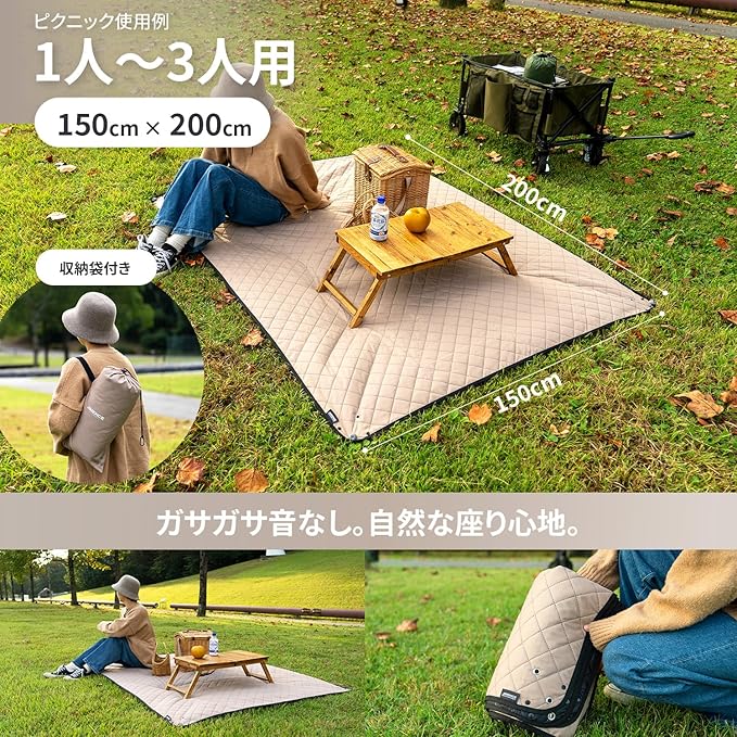 【おすすめ用途】ピクニック、花見、花火大会、運動会等のイベント行事、テント内のインナーシートとしても使えます。カップル、親子に最適な広さです。