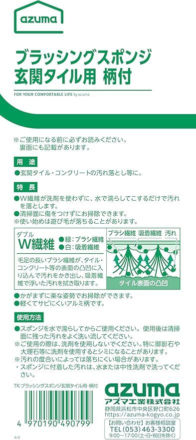 アズマ工業(Azuma Industrial) TKブラッシングスポンジ玄関タイル用・柄付 つなぎ柄 本体 グリーン 玄関掃除 ベランダ掃除 全長約107cm スペア交換可 アズマブラシ