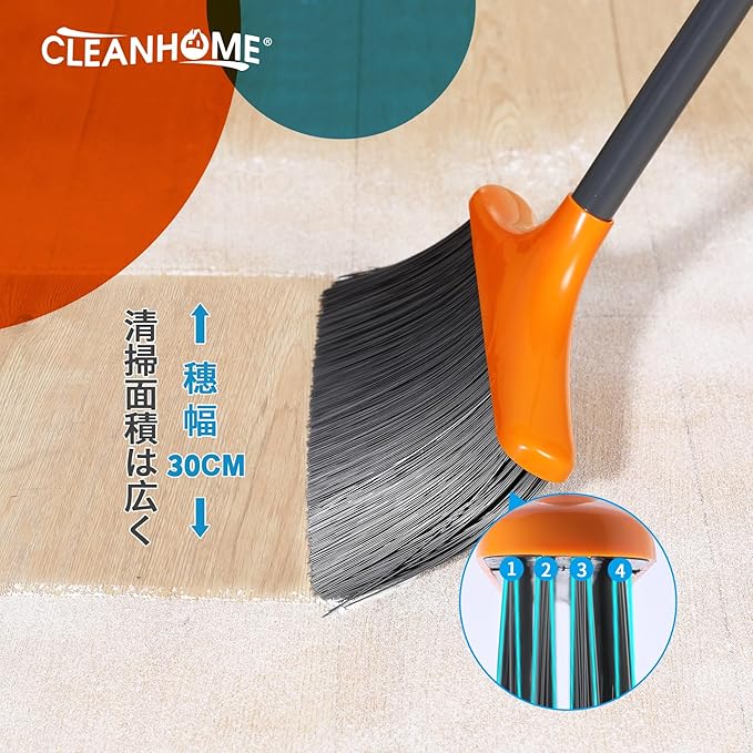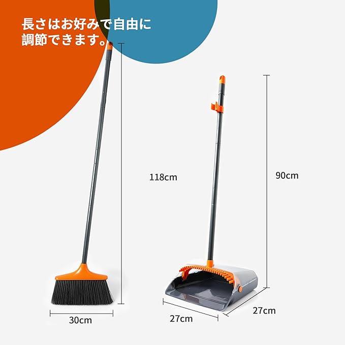【自由調節 延長ポール付き】ほうきちりとりは人体デザインに適合、ほうきの高さは95〜132 cm、曲げの問題に別れを告げる、一本の延長ポールが付いていますので、ほうきにもちりとりにも使用でき、場所によってご自由に組み合わせます。例えば、天井を掃除する時は延長ポールを使用して長さは132cmになります。【適用場所】おしゃれなデザインで幅広く使用され 石床も木床も、部屋、屋外、玄関、ベランダ、美容室、コンビニ、会社、庭、ガレージ、ペットショップ 学校どが掃除できます。