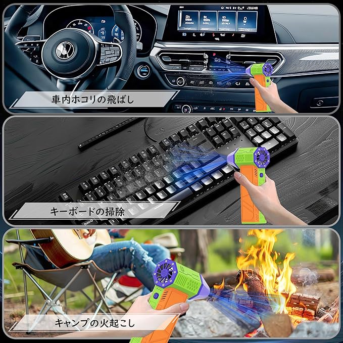 【用途色々】強力風速・充電式・小型・ノイズ付き、このエアブロワーが吹く・送風の機能が備えっていて、前記以外にエアベッドなどを膨らませます。更なる使い方に関して、お客様からのお写真やおビデオなどを大歓迎です。商品やサービスにお問い合わせもよろしくお願いいたします。