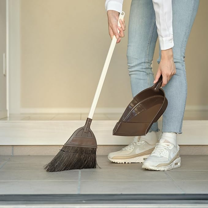 土間やPタイルの掃き掃除におすすめ アレンほうき短柄とちりとりセット