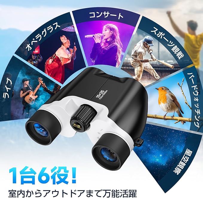 双眼鏡 ライブ用 15倍 オペラグラス 防振双眼鏡 【業界先端BAK4光学レンズ&FMC多層コーティング】超軽量 コンパクト 防水防塵 近視対応 バードウォッチング/スポーツ観戦用/コンサート用/野鳥観察/卒業コンサート 日本語取扱説明書(ホワイト) (ホワイト)