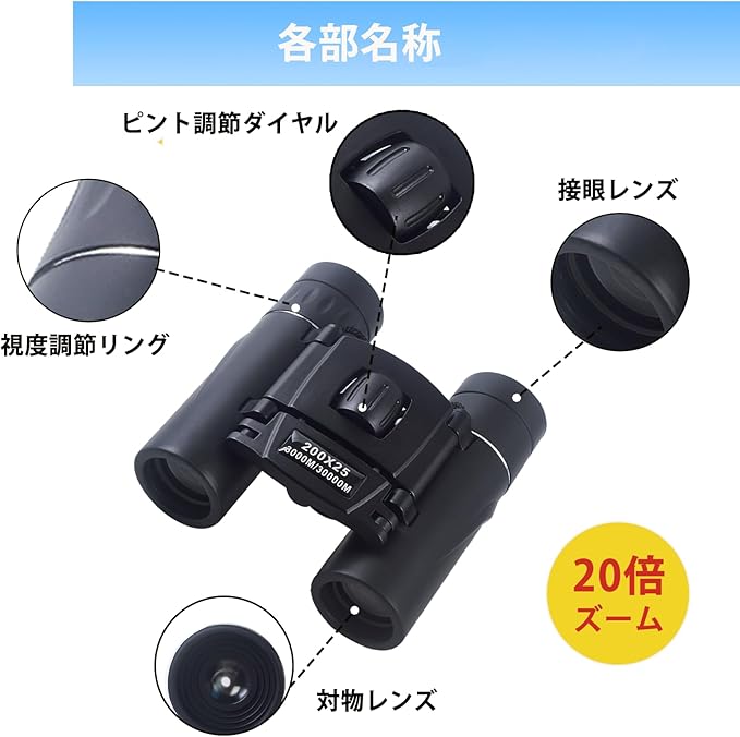 双眼鏡 ライブ用 オペラグラス スポーツ観戦用 コンサート用 20倍 望遠鏡 小型 超軽量 観劇 倍率調整可能 双眼鏡 コンサート用 防水 収納ケース付き 日本語説明書 ブラック