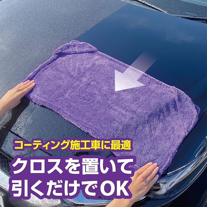 ボンネットやルーフ、フロントガラスにクロスを置いて引くだけでOK。ボリュームたっぷりの超極細繊維により、水滴を残さず拭き上げます(約1.4L)。