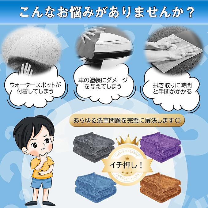 【大判洗車タオル】ちゃんとした厚みがある洗車タオルは、吸水性も高いため絞りにくくなっています。使用後は風通しの良い場所で干してください。 商品に関するご意見など気になる点がございましたら、お気軽にお問い合わせくださいませ。誠心誠意ご対応させていただきます。