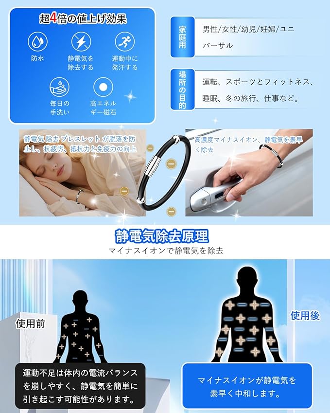 ❤負のイオンを放出します:2-3周間で静電気が減りますので、少なくとも1周間は着用してみてください。着用時間が長くなるにつれて、効果はどんどん良くなっています。