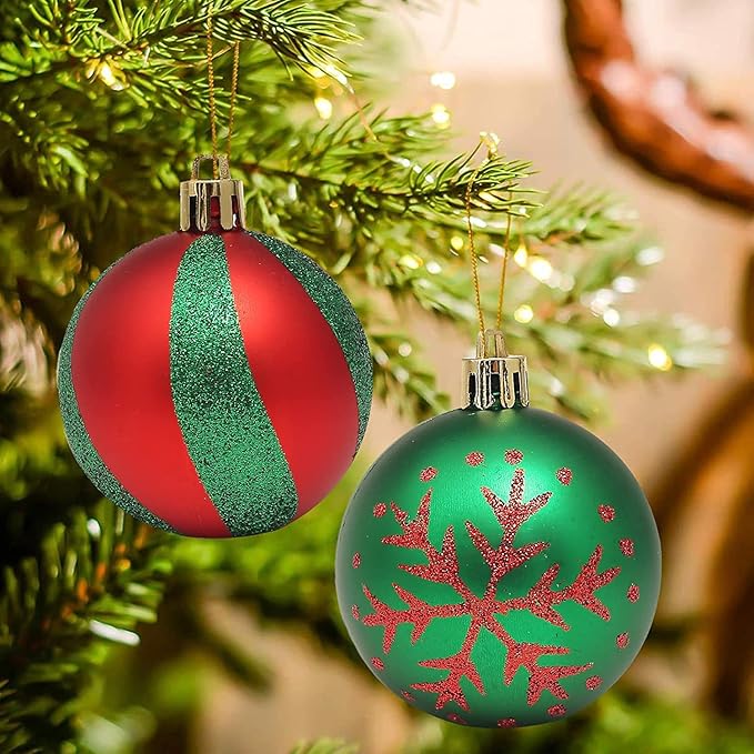 Forhomelife クリスマスボール 44個入り クリスマス オーナメント 飾り付け 6cm・3cmボールセット クリスマスツリー 飾り デコレーションボール おっしゃれ 赤緑