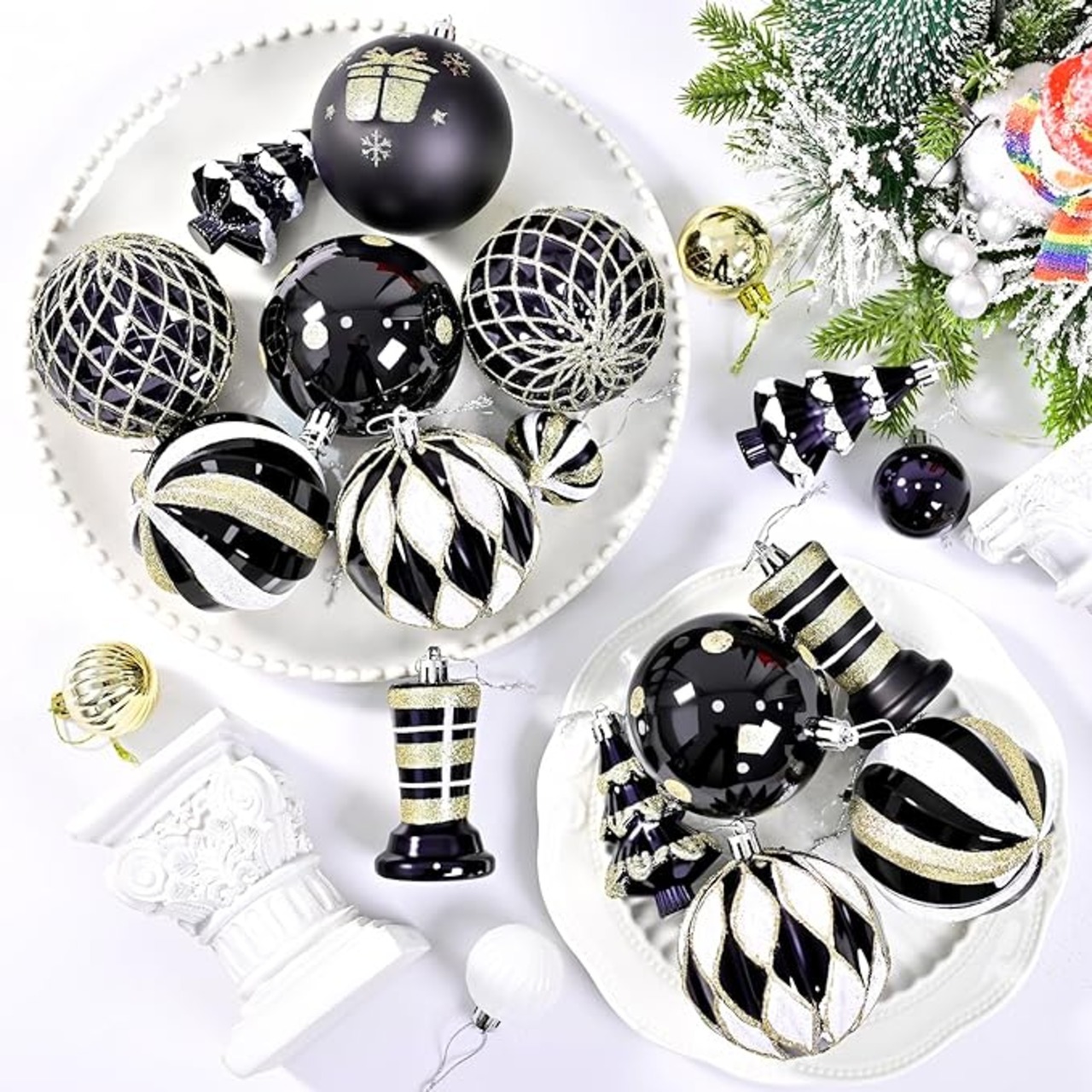 クリスマス ボール オーナメント セット SVNVIOZ 北欧風 8㎝ ゴールド ブラック ホワイト ボール クリスマスツリー 飾り 豪華 多種類 おしゃれ デコレーション