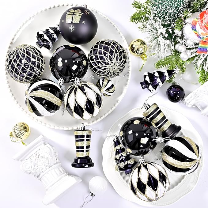 ★ 【製品仕様】セット内容:クリスマスオーナメント40pcs入り、サイズ:4㎝~8cm、カラー:ブラックとゴールドとホワイト、材質:プラスチック。
