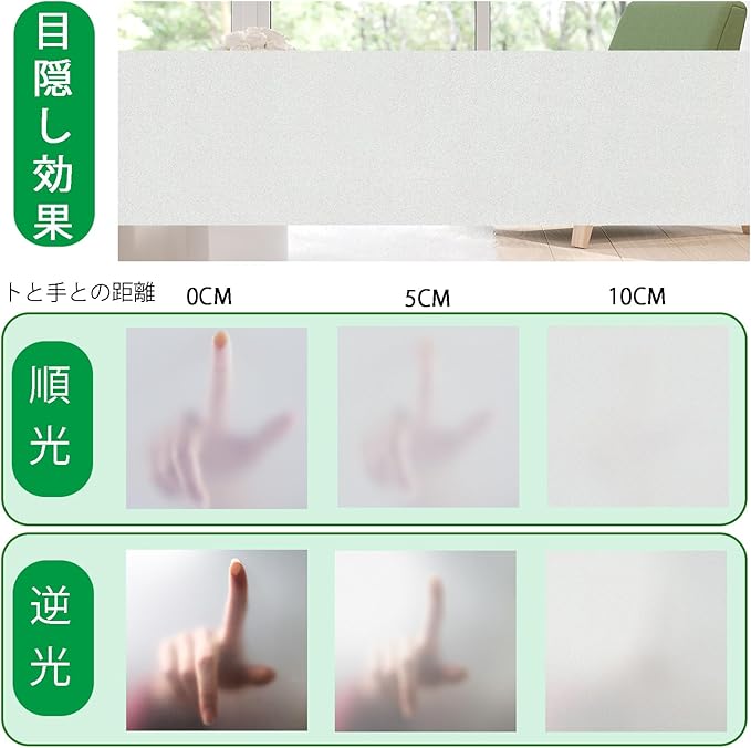 【適用範囲】平滑で平らなガラスに適しています。すりガラス、曲面ガラス、凹凸のあり、平らでないガラスには使えません。すりガラス フィルム ごオフィスのガラス、家庭の窓、ガラス引き戸、フランス窓などに幅広く適しています、 寝室、リビングルーム、ダイニングルーム、オフィス、ホテル、教室、ロビーなどに幅広くご使用いただけます。● ご使用上の注意:室内から貼るタイプです。外側に貼り付けると使用寿命が大幅に減少し、窓ガラス面から落ちる恐れがあります